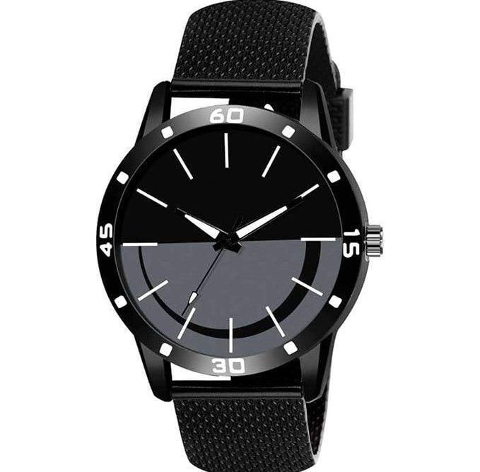This is an analogue men's black color watch